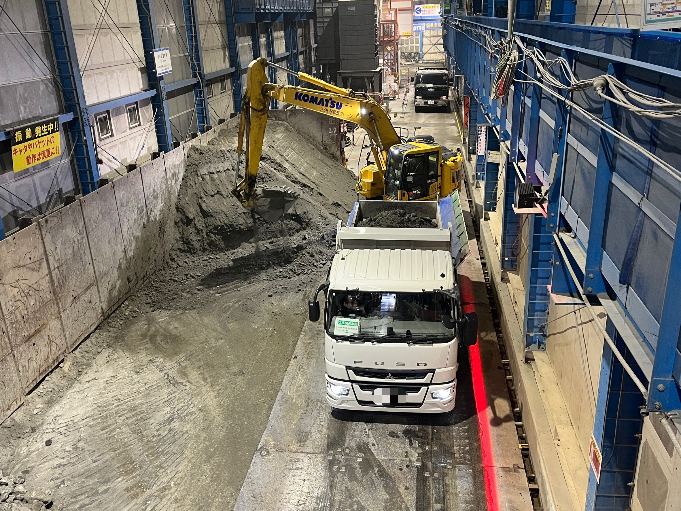 併設トンネルの掘削に着手しています。10両編成の電車を2本留置することが可能なトンネルを2本並べたトンネルです。(幅約11m、高さ約10m) 掘削は1本ずつ進めていきます。